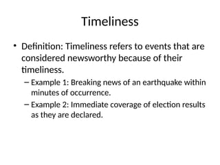 • News values are the criteria or standards that