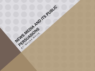The document discusses the biases and influences that affect news media reporting. It argues that news media pushes biases, administers panic, and plays toward ratings and money rather than providing purely factual information. This creates an environment of misinformation where the public lacks consideration of alternative perspectives. The document urges young people to be critical thinkers and resist being immediately influenced by news media, which can skew reports through emotional manipulation and disregard for context or common factors behind certain events.