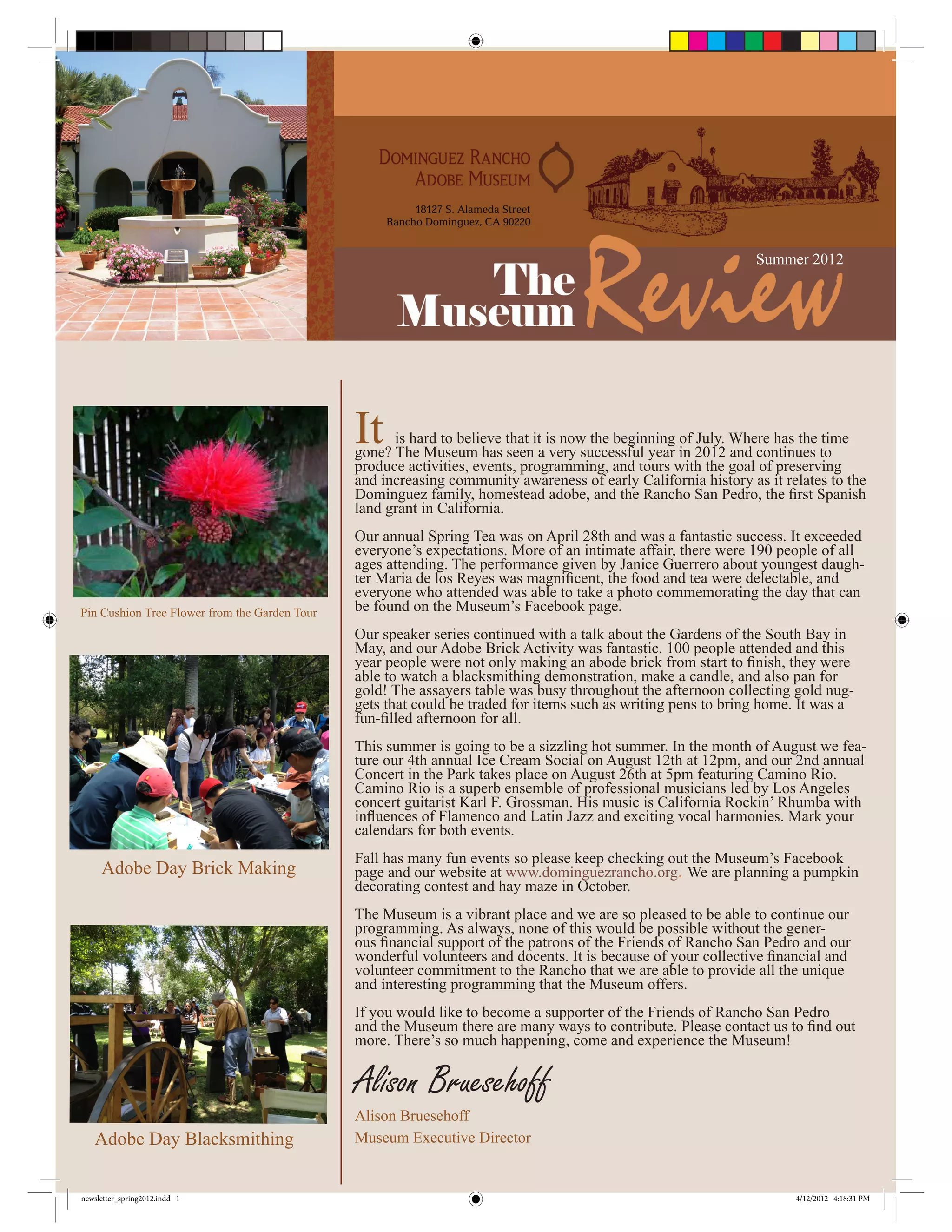 The Dominguez Rancho Adobe Museum has had a successful year in 2012, hosting various events and programs focused on early California history. Upcoming events include an ice cream social and a concert, while free tours for school children have brought over 8,000 students to the museum in recent years. The museum is supported by generous donations and volunteer efforts, contributing to its vibrant community involvement and preservation efforts.