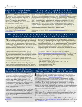 The document summarizes highlights from the AFMC Force Development newsletter. It discusses the Year of Community College of the Air Force (YoCCAF) initiative to encourage enlisted members to complete CCAF degrees. It notes that the target of a 10% increase in degrees was exceeded, with an 11% increase in degrees awarded in 2011 compared to 2010. It also announces that Phase II will focus on continuing education beginning in January 2012.