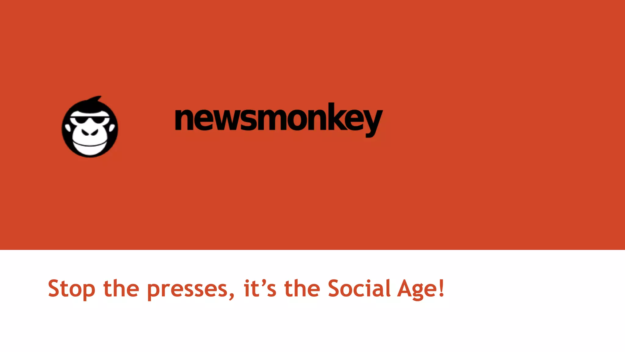This document discusses how traditional media is facing new competition from social media platforms and how content needs to be optimized for social sharing. It introduces Newsmonkey, a new free and exclusively digital news brand targeting 18-34 year olds. Newsmonkey will focus on topical, entertaining content that is interactive and encourages user contributions and communities. The document outlines plans to stimulate social interaction and viral sharing through gamification of user status and rewards. It also discusses using crowdfunding and social advertising like native ads that emulate editorial style to promote the new brand without a media budget.
