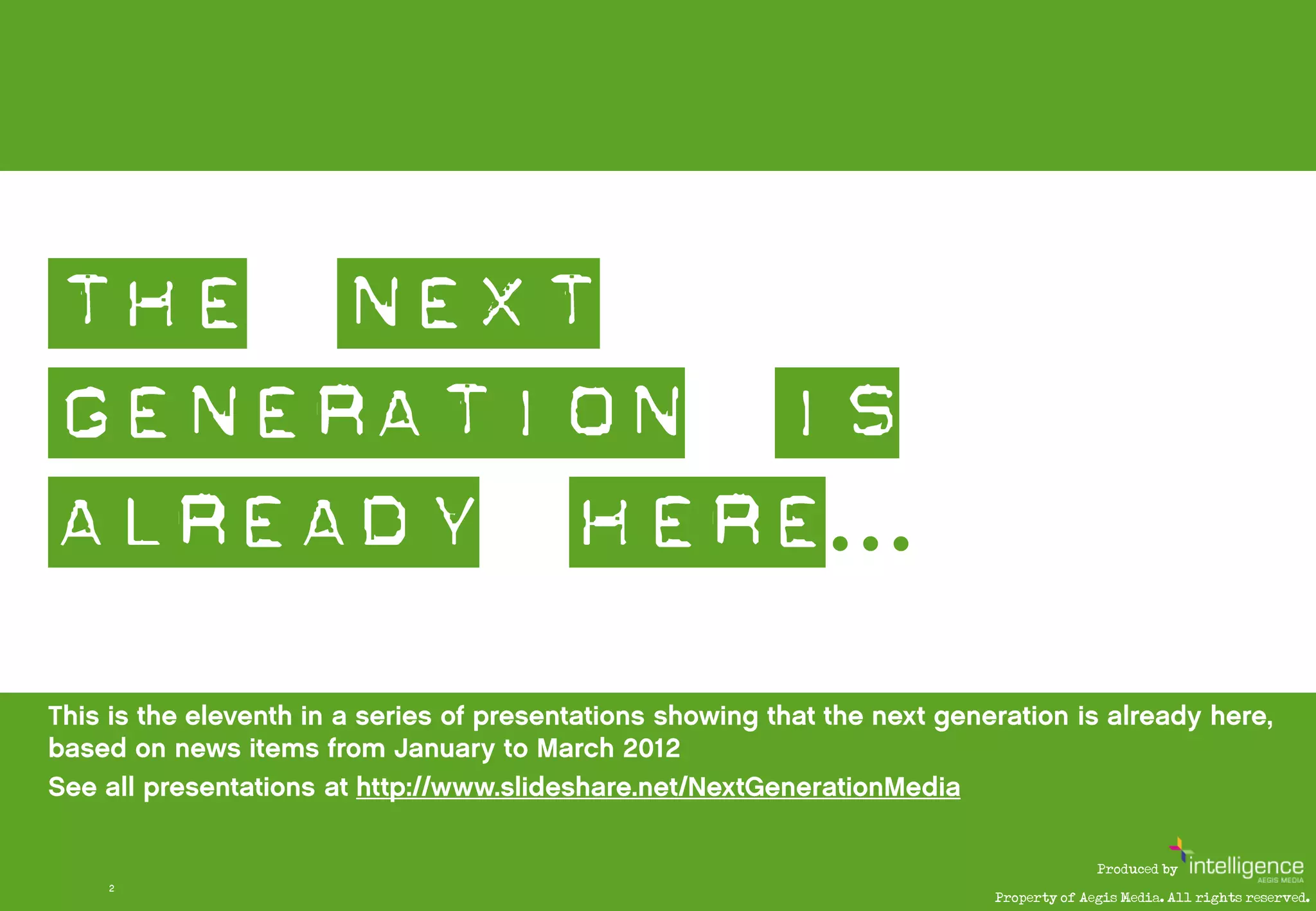 This document discusses the next generation of media, technology, content, and mobile. Some key points include: