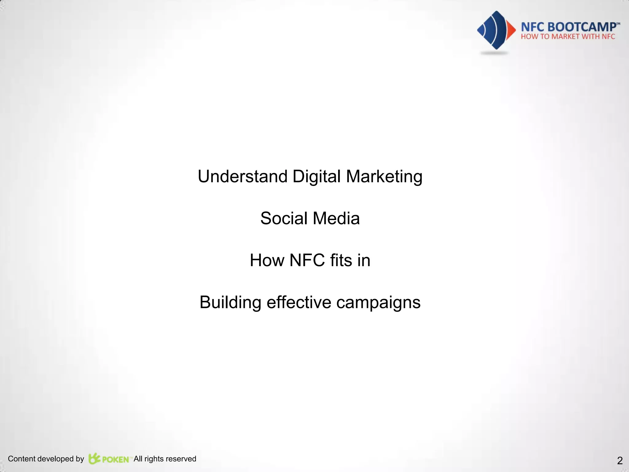 The document discusses the integration of NFC (Near Field Communication) technology in advertising and social media, emphasizing its role in engaging today's digital native consumers. It highlights the need for brands to create sustainable relationships and experiences across various platforms, as conventional marketing methods are becoming less effective. The document also cautions against over-reliance on NFC, urging marketers to consider diverse strategies and evaluate the effectiveness of their campaigns.