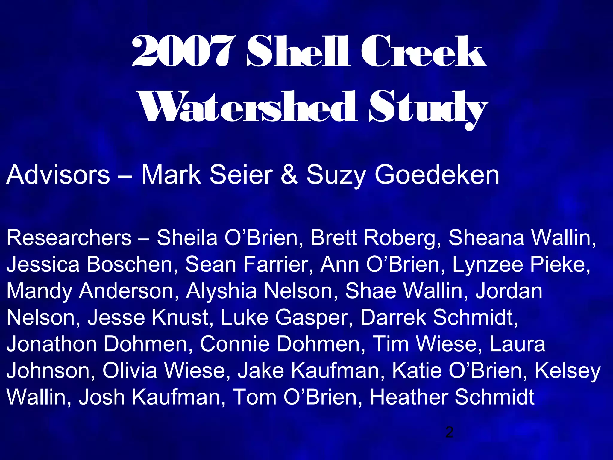 1. The document summarizes a 2007 watershed study of the Shell Creek and Loseke-Taylor Creek watersheds conducted by researchers from the Lower Platte North Natural Resources District.