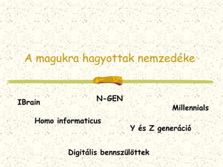 A netgenerációhoz tartozni nem életkori, hanem életmódbeli kérdés. Természetesen a digitális kultúrában szocializálódottak nagyobb valószínűséggel tartoznak ehhez a generációhoz. Ők azok, akiknek természetes az információ és a kapcsolatok azonnali elérése. Ezért a homo informaticus a legtalálóbb elnevezés. Az emberiség végtelen lehetőségek előtt áll mind a szellemi, kulturális fejlődés, mind a szellemi lepusztulás irányába.