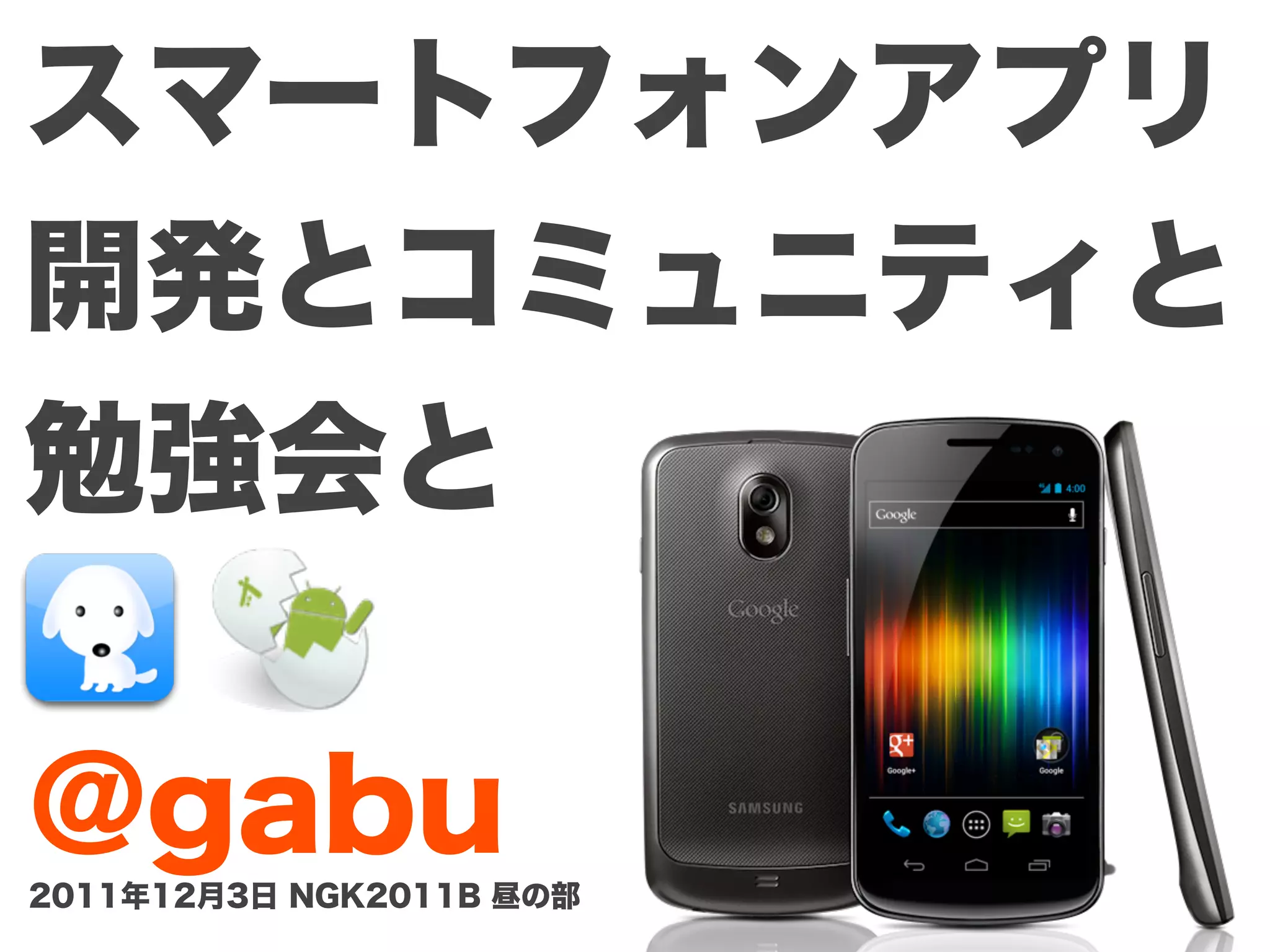 スマートフォンアプリ 開発とコミュニティと 勉強会と @gabu 2011年12月3日 NGK2011B 昼の部