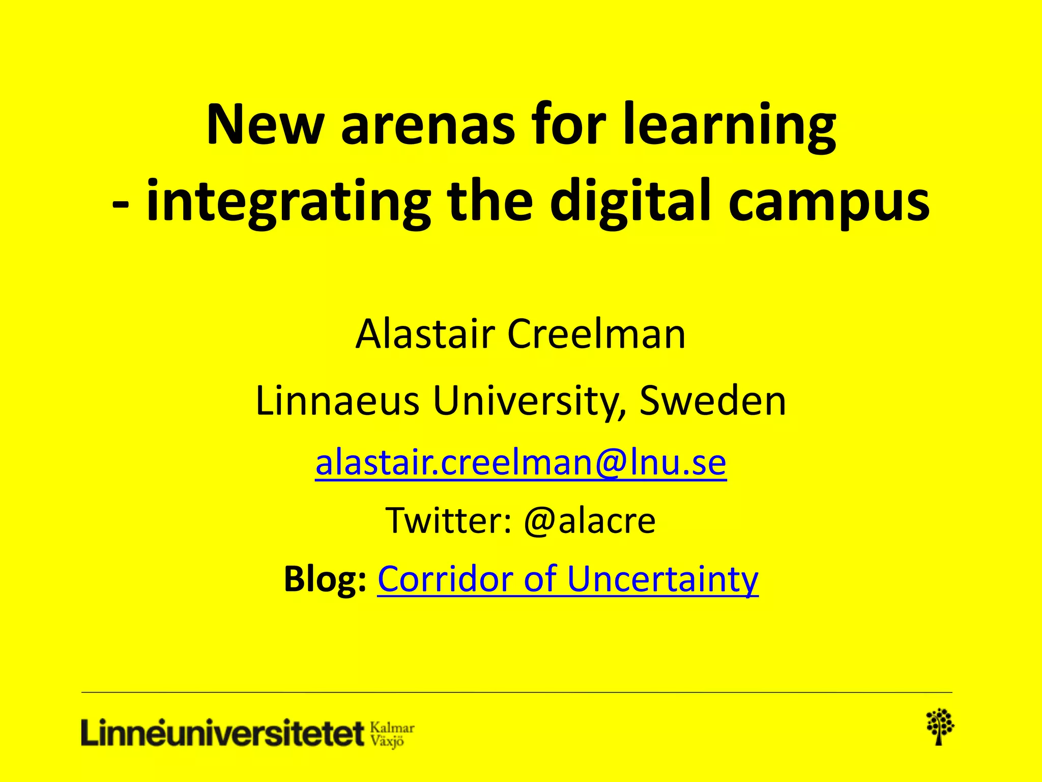 1) The document discusses integrating digital learning spaces on university campuses and some of the challenges involved in creating effective digital learning environments.