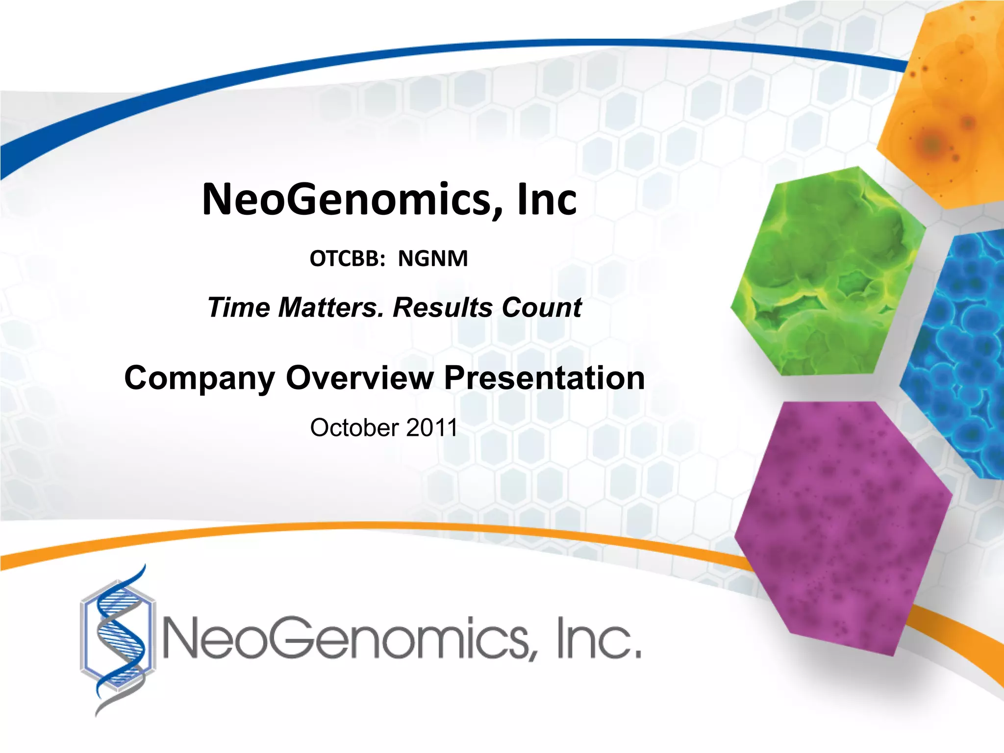 NeoGenomics is a pure play cancer genetics laboratory that provides diagnostic testing services to oncologists, pathologists, and hospitals throughout the US. The company utilizes advanced technologies like cytogenetics, flow cytometry, FISH, and molecular testing to analyze cancer samples. Key growth drivers include the aging US population which is increasing cancer incidence, and frequent discoveries linking new genes to cancer. NeoGenomics aims to accelerate its revenue growth and increase operating leverage through expanding its sales team, test offerings, and geographic reach.