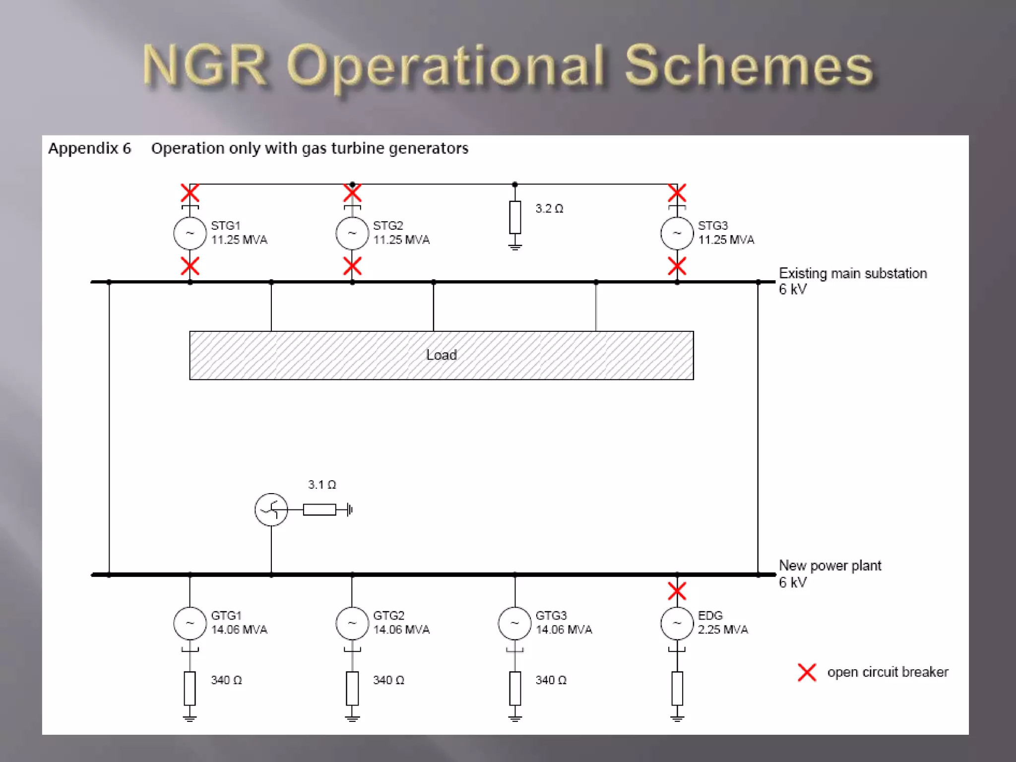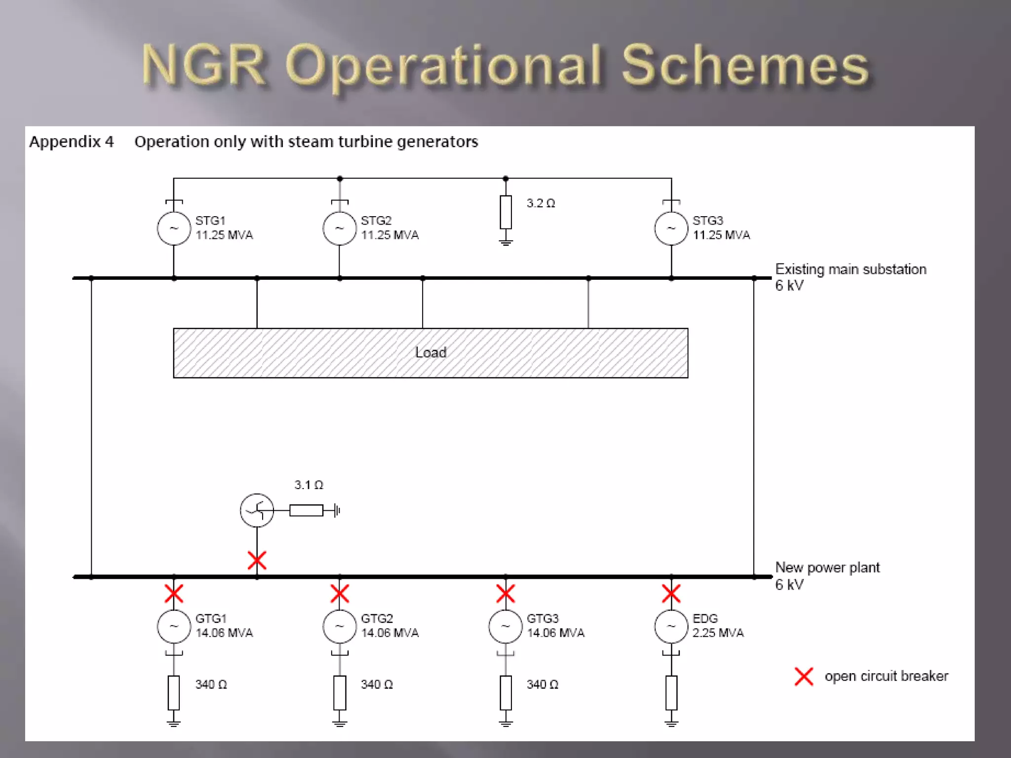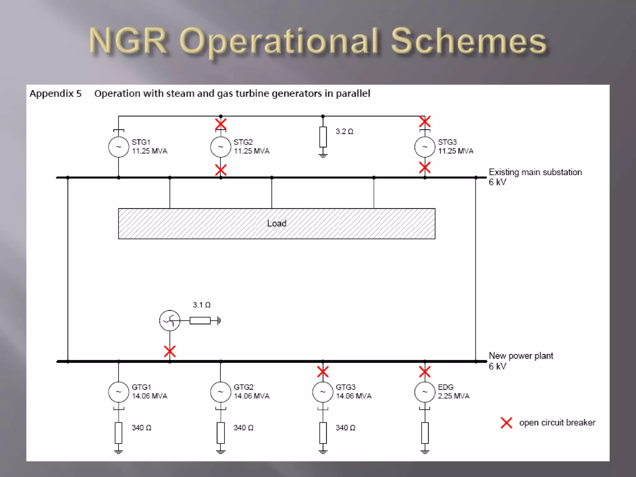 The document discusses neutral grounding resistors (NGRs) and zig-zag transformers. It explains that NGRs limit fault currents to prevent damage, and zig-zag transformers provide a return path for earth faults on delta systems. The document also provides details on the NGR and zig-zag transformer specifications and settings for a co-generation power system before and after installation of new generators.