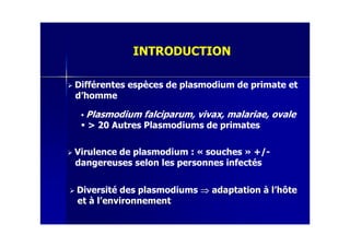 Diversité des plasmodies - Présentation de la 3e édition du Cours international « Atelier Paludisme » - INSTITUT PASTEUR DE COTE D'IVOIRE 03 BP 2119 ABIDJAN 03 - INGENIEUR - enguessan@yahoo.fr