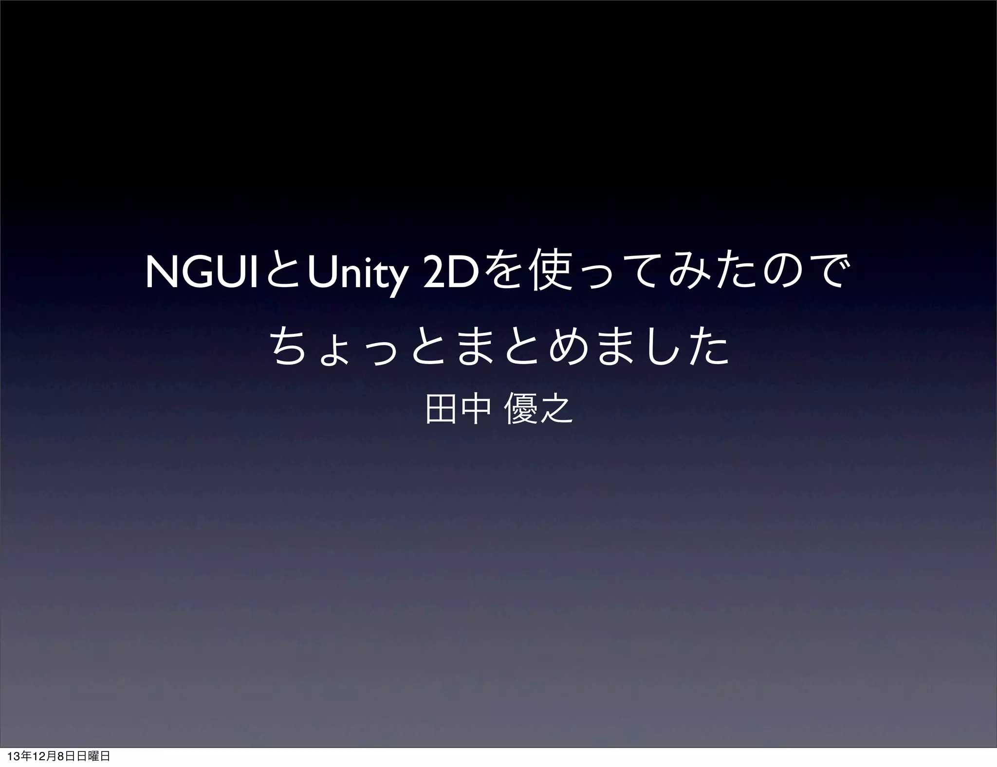 NGUIとUnity 2Dを使ってみたので ちょっとまとめました 田中 優之 13年12月8日日曜日
