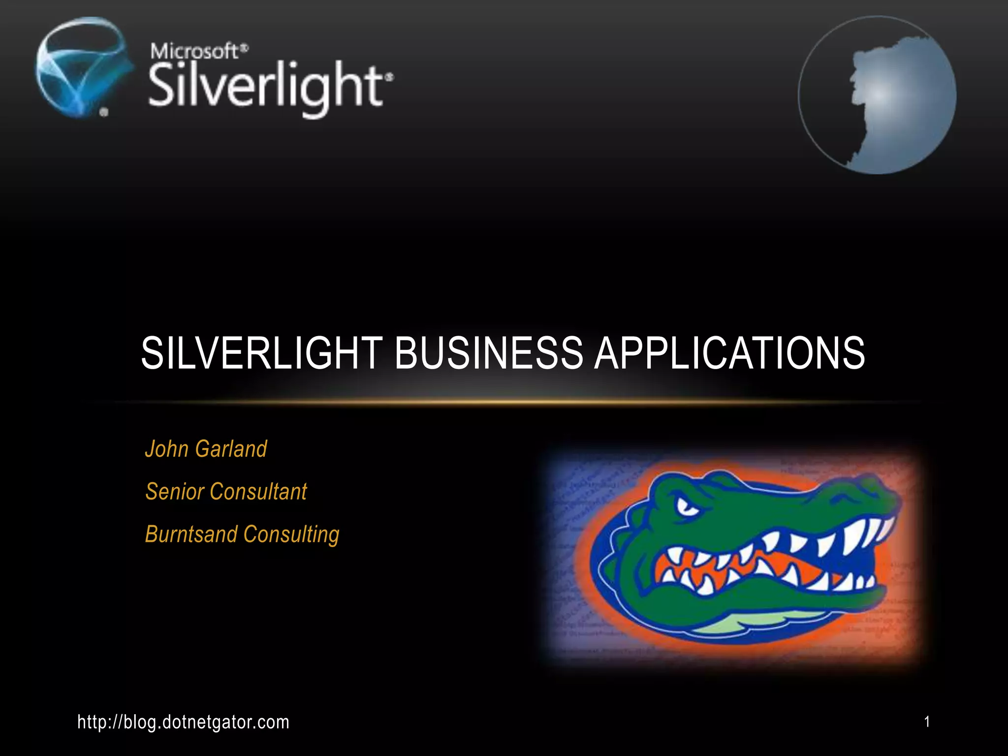 The document discusses Silverlight, a technology for developing cross-platform .NET applications for browsers, detailing its features, pros, and cons. It highlights its capabilities in data interaction, web service access, and integration with business logic while noting its limited adoption compared to other technologies like Flash. Additionally, it provides resources and examples for leveraging Silverlight in business applications.