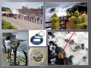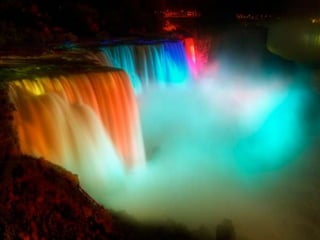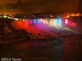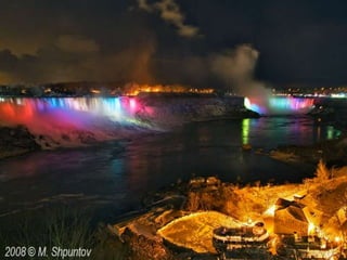 Niagara Falls straddles the border between Canada and the United States. It is made up of three waterfalls - the American Falls, Bridal Veil Falls, and the massive Horseshoe Falls. Over 12 million tourists visit Niagara Falls each year to see the thundering waterfalls and experience the surrounding parks and attractions.