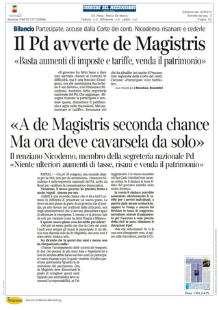 Il documento è un estratto di un servizio di media monitoring, edito il 02/03/14. È riservato al committente, Marco De Marco, e specifica dettagli tecnici sulla diffusione e lettura. Non fornisce ulteriori informazioni sul contenuto analizzato.