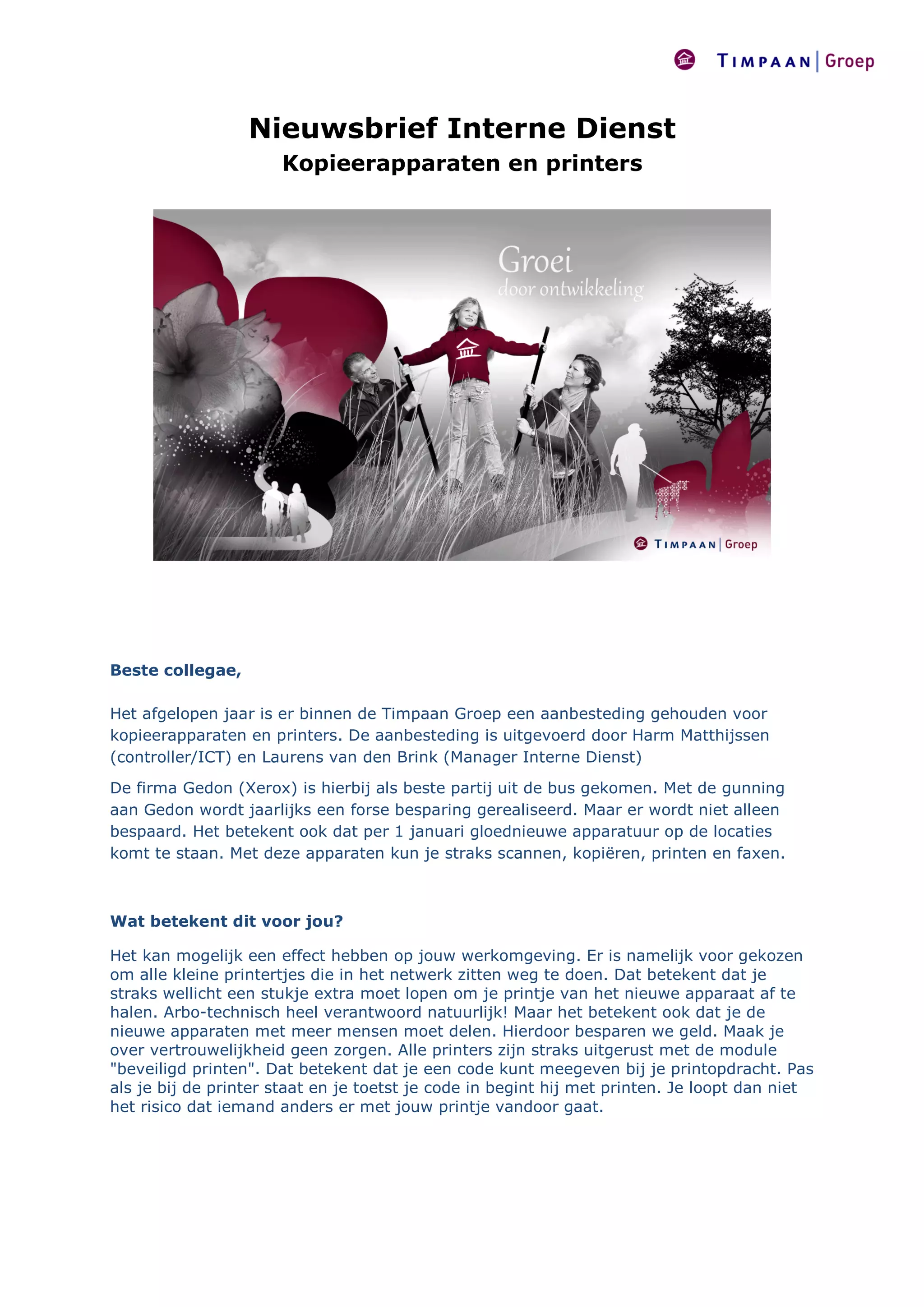 kopieerapparaten en printers. De aanbesteding is uitgevoerd door Harm Matthijssen
