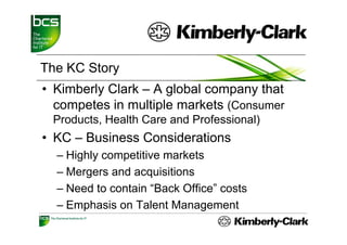 1) Kimberly Clark is a global company that competes in multiple markets and needed to contain back office costs while emphasizing talent management.