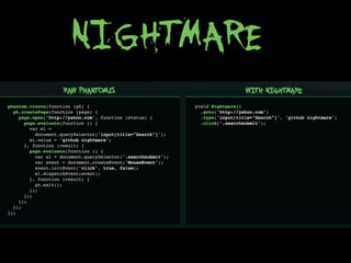 Electronベース もともとはPhantomJSベース ハイレベルブラウザオートメーションライブラリ ネイティブアプリ開発 生霊 http://www.nightmarejs.org