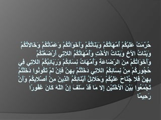 Nikah adalah ikatan suami istri secara lahir batin berdasarkan agama. Terdiri atas rukun, hak dan kewajiban suami istri, serta larangan-larangan seperti nikah mut'ah, nikah silang, dan nikah khadan. Suami bertanggung jawab atas nafkah istri, istri taat pada suami dalam batas agama. Keduanya sama-sama menjaga kehormatan dan rahasia keluarga.