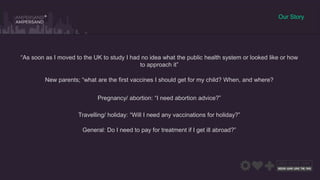 This document proposes using a chatbot named Nima to help address non-emergency queries for the UK National Health Service (NHS) more efficiently. The NHS currently deals with over 1 million patients every 36 hours through various contact methods, but the process can be time-inefficient and complex. A chatbot could provide 24/7 automated advice and information for common non-emergency questions through social media platforms, helping reduce costs from these types of inquiries. The document envisions bots as part of a larger digital strategy to improve engagement with NHS customers in a more relevant, cost-effective manner.
