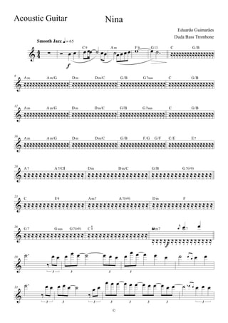 Tài liệu chứa một loạt các nhạc cụ và ký hiệu âm nhạc khác nhau liên quan đến thể loại nhạc smooth jazz. Nó mô tả các hợp âm và mẫu âm nhạc với nhiều ký hiệu và ký tự chuyên ngành. Thông tin được trình bày một cách chi tiết với các đoạn ký hiệu âm nhạc cụ thể.