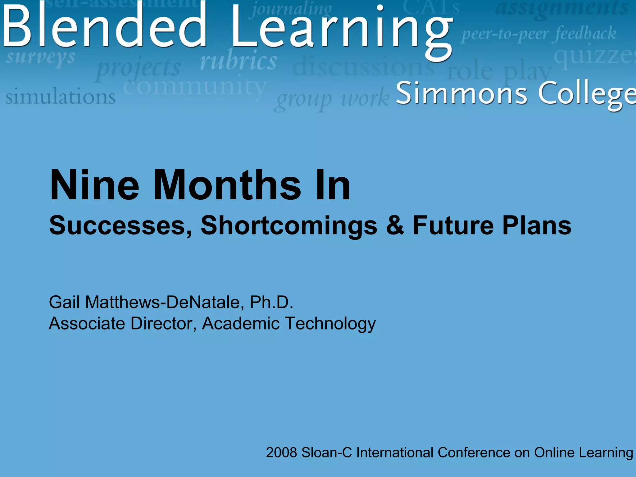 The document outlines the successes and challenges of blended learning implementation at Simmons College over a nine-month period, detailing strategic planning, faculty engagement, and the development of supportive policies. It highlights the establishment of blended learning successes through professional development, ethnographic case studies, and course redesign efforts. Furthermore, it addresses future concerns regarding economic pressures, leadership changes, and the quality of courses.