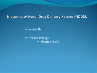 Niosomes are synthetic microscopic vesicles made from nonionic surfactants and cholesterol, used as drug delivery systems due to their stability and lower toxicity compared to liposomes. They can accommodate a wide range of drug solubilities and improve therapeutic performance by controlling drug release and target delivery. The document discusses their structure, preparation methods, advantages, and applications in various medical treatments.