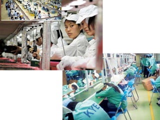 The document discusses Apple's iPad, including questions about what it is, how much it costs, and what it does. It then prompts the reader to read an article on the iPad and note down five key bullet points of information, and write a paragraph comparing production in China versus the UK. Finally, it asks if Apple's share of the iPad's cost is justified and if the article impacted their willingness to purchase electronics.