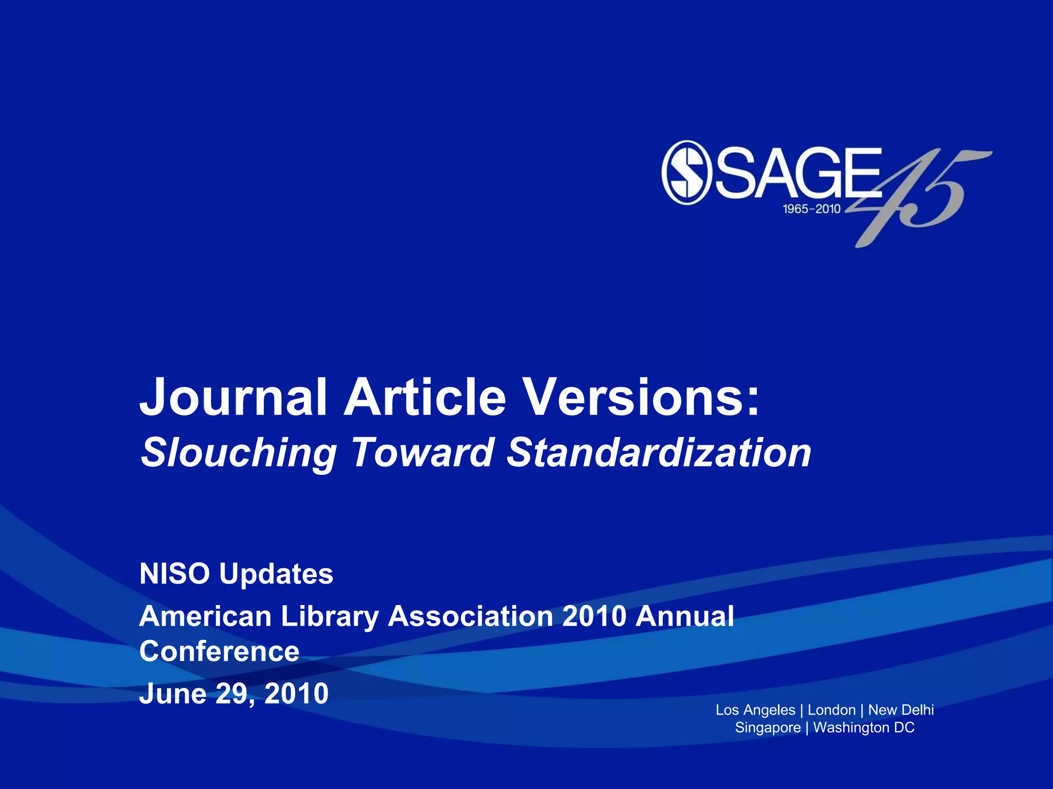 A presentation by SAGE's Lettie Conrad on Journal article versioning