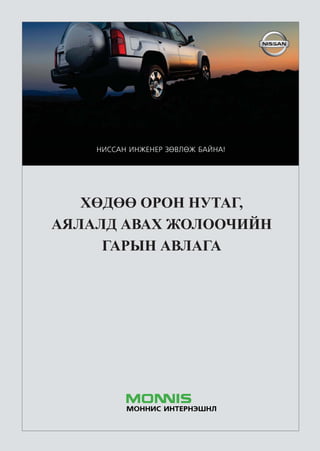 áàéíà Íèññàí òºâ Ñ¿õáààòàð ä¿¿ðýã, 2-ð õîðîî, Íàðíû çàì-13, Óëààíáààòàð-14251 Óòàñ: 318283 Ôàêñ: 323235 Öàõèì õàÿã: www.monnis.com, www.patrol.mn 35