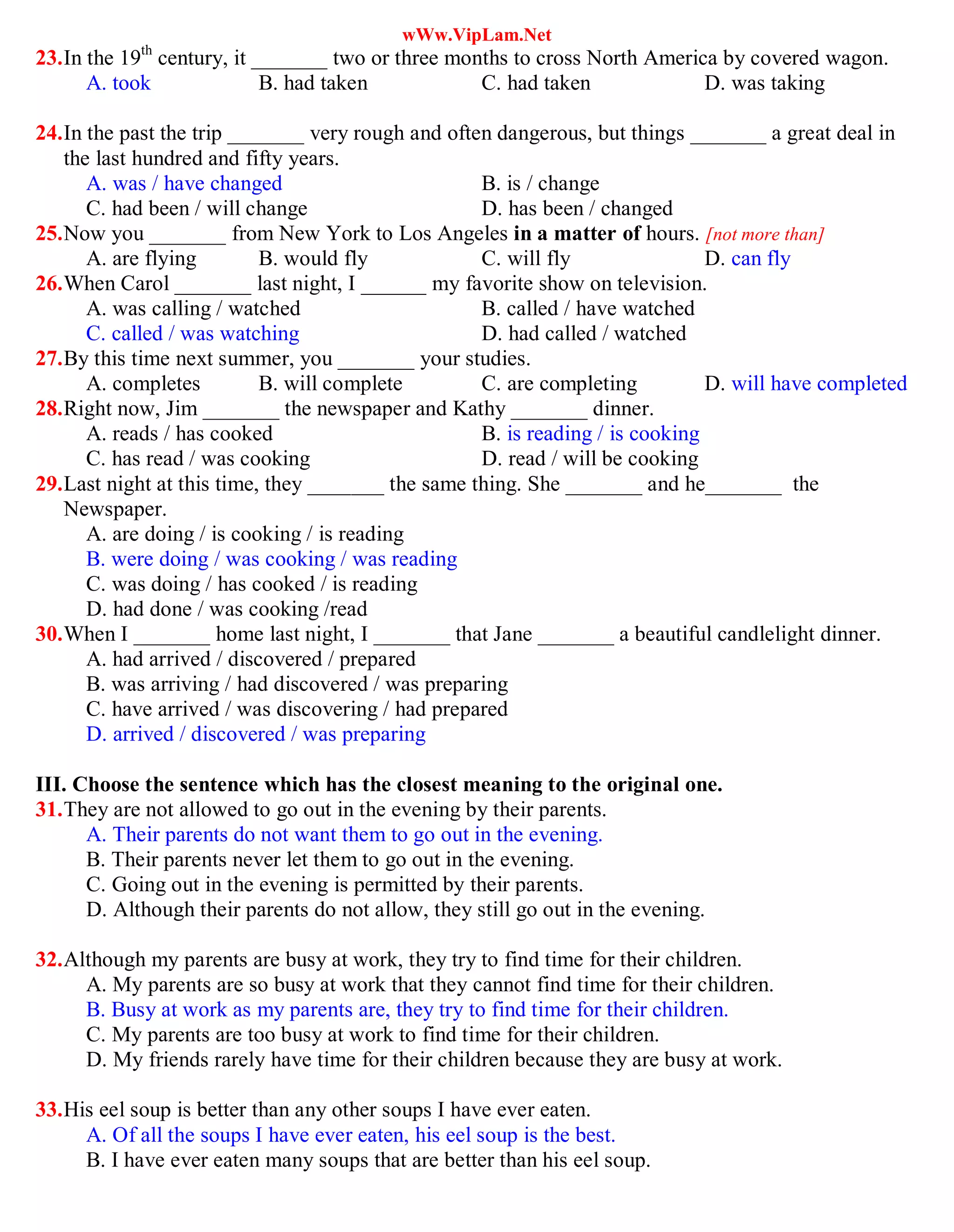 This document contains an English proficiency test with multiple choice questions covering topics of grammar, vocabulary, reading comprehension. There are 5 sections with a total of 50 questions related to topics like word stress, parts of speech, tense, synonyms and antonyms. The reading comprehension passage is about a woman named Jean and her life experiences from childhood to adulthood.