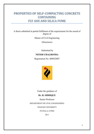 This document provides an introduction to self-compacting concrete (SCC). SCC is concrete that can be placed and consolidated under its own weight without vibration. It was developed in Japan in the late 1980s to address issues with adequate compaction. The key properties of SCC are high flowability and good cohesiveness. These properties allow SCC to fill forms and pass through reinforced areas without segregation or honeycombing. SCC offers advantages over traditional vibrated concrete such as faster construction, improved durability, better surface finish, and a safer working environment by eliminating vibration. While SCC provides benefits, it also has a higher material cost due to increased binder and chemical admixture contents required.