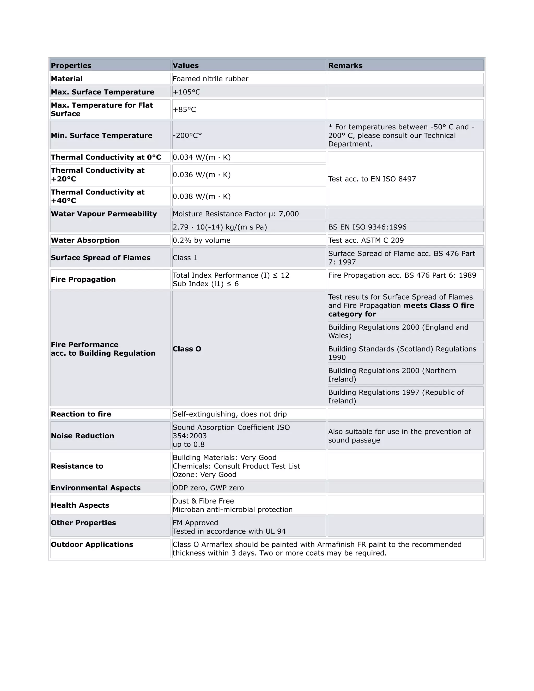 - Thermal conductivity between 0.034 and 0.038 W/(m·K) depending on temperature.
