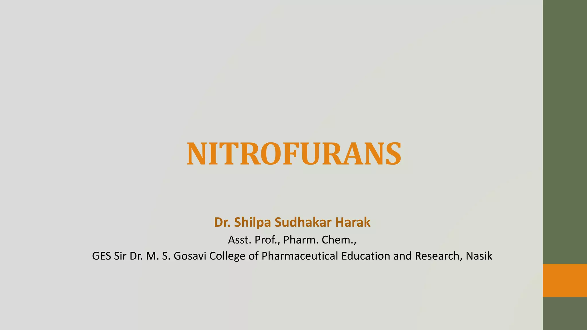 The document discusses nitrofuran compounds used in chemotherapy for bacterial and protozoal infections, focusing on nitrofurazone, furazolidone, nitrofurantoin, and methenamine. It details the mechanisms of action, uses, chemical stability, and common side effects of these drugs, highlighting their effectiveness against various pathogens. Additionally, it mentions methenamine derivatives and fosfomycin, emphasizing their roles in urinary tract infections and their interactions with urine acidity.