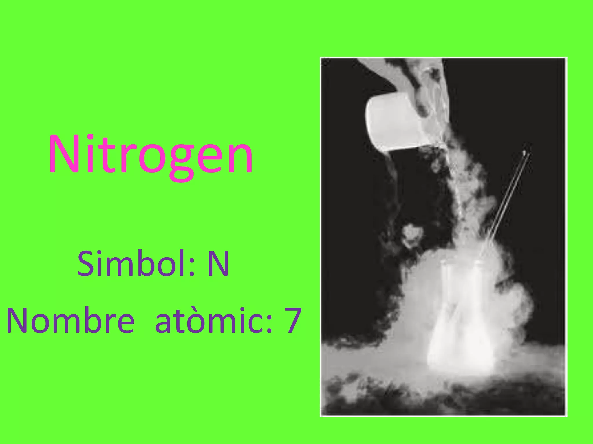 d’amoni:NaN3 (300ºC) à 2Na + 3N2 (NH4)2Cr2O7 à N2 +