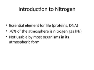 • 78% of the atmosphere is nitrogen gas (N₂)