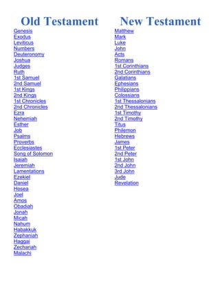 The document is the New International Version of the Holy Bible. It contains both the Old Testament and New Testament. The Old Testament contains books like Genesis, Exodus, and Psalms. The New Testament includes the Gospels of Matthew, Mark, Luke and John as well as other books like Acts, Romans and Revelation. The Bible is organized by book and chapter for easy reference to specific passages.