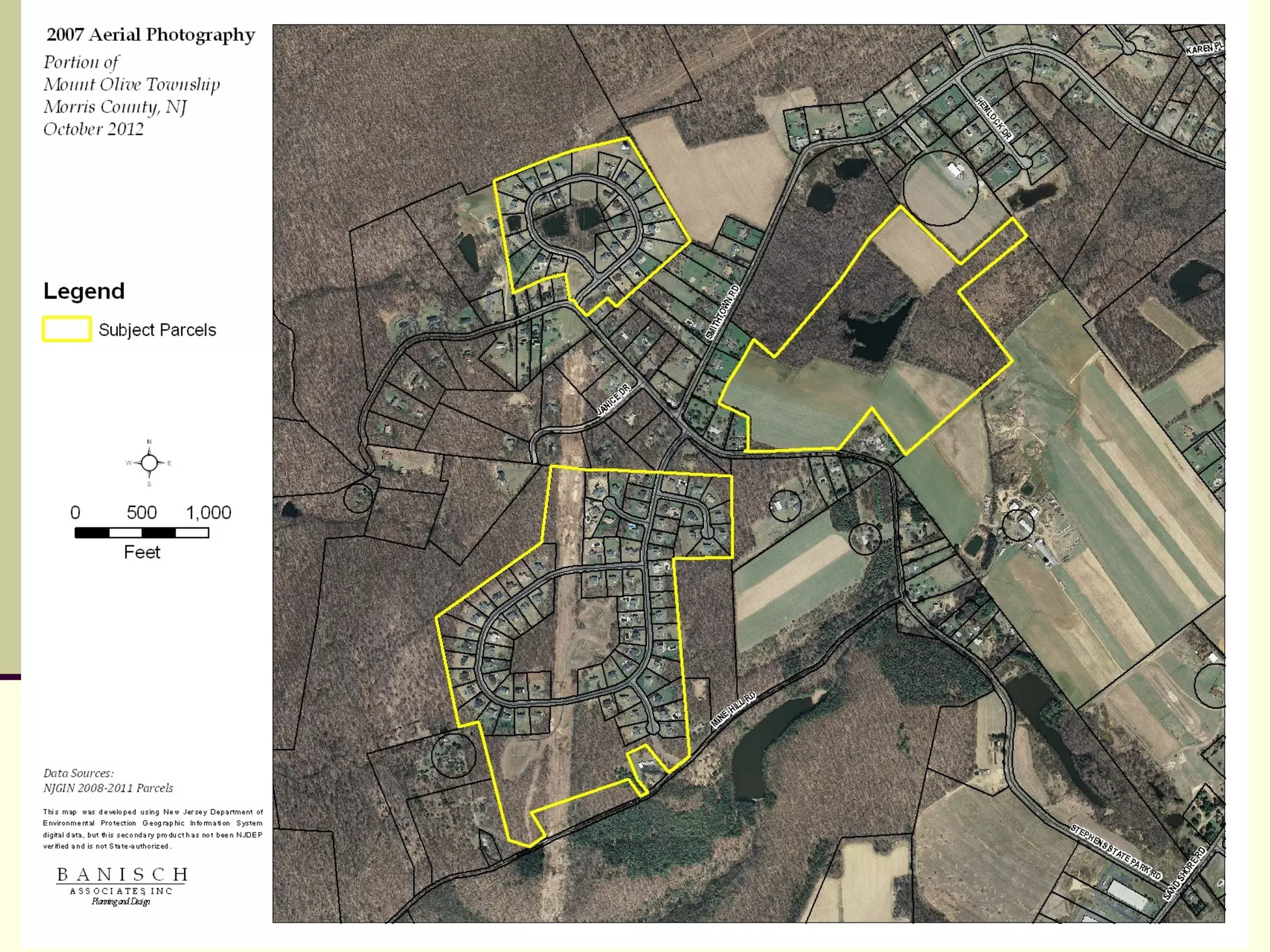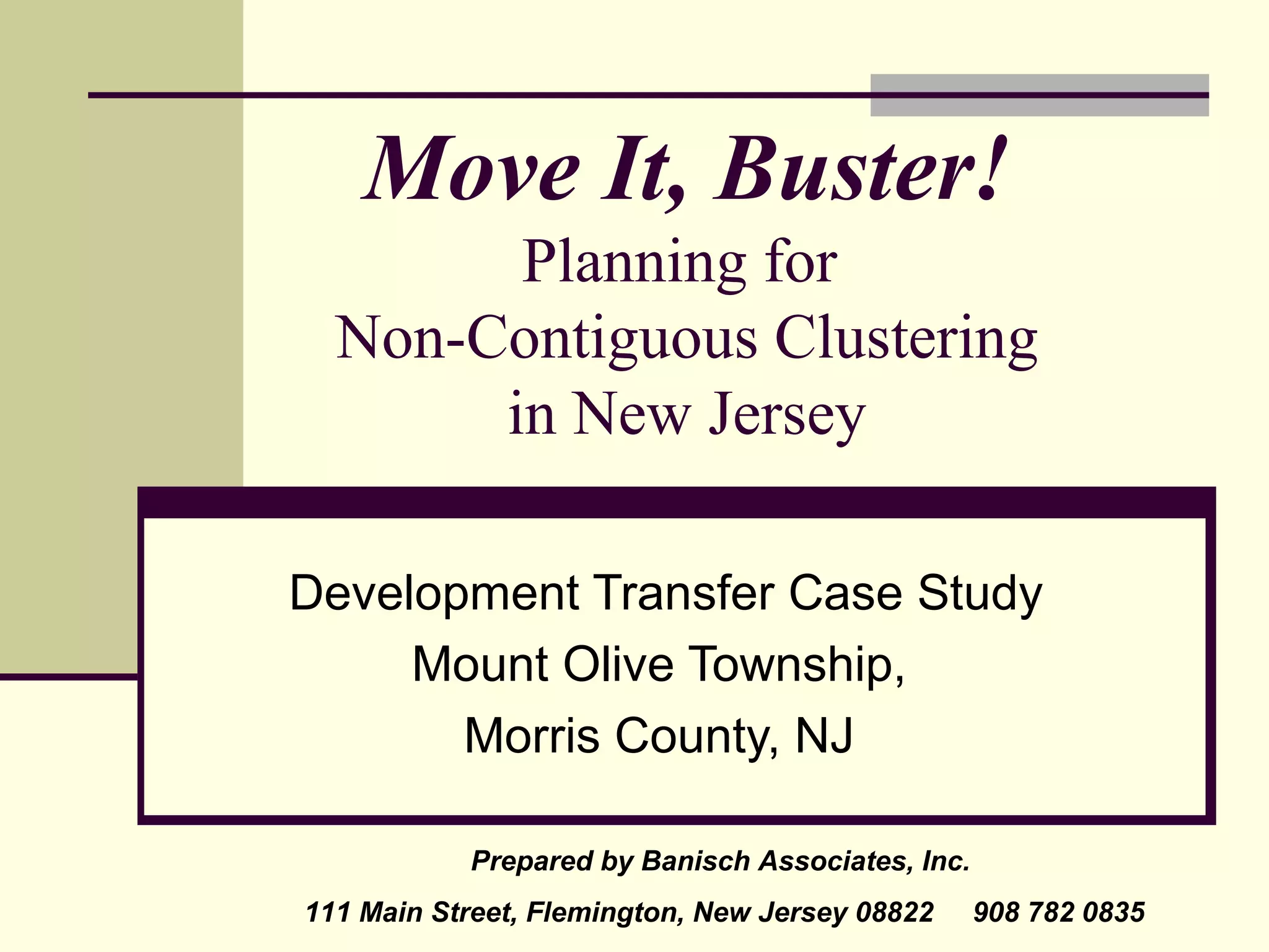 The document discusses non-contiguous parcel clustering, a planning technique used in New Jersey that allows development rights from one parcel to be transferred to a non-adjacent parcel for higher density development, with the sending parcel preserved as open space, and provides a case study of this technique being used successfully to preserve farmland in Mount Olive Township. While simpler than traditional transfer of development rights programs, non-contiguous clustering requires careful implementation to avoid undermining land use goals if not linked to a municipality's preservation objectives.