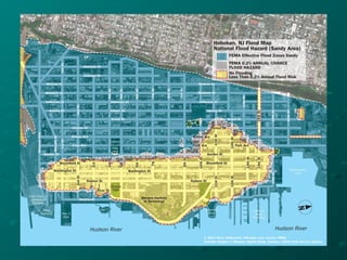 The document summarizes climate risks facing the city of Hoboken, New Jersey and steps the city is taking to increase resilience. Key points include:
