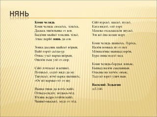 Документ представляет собой лексикографический материал, касающийся слова 'нянь', что в переводе означает 'хлеб' на различных языках, включая иранские и тюркские. Описывается отношение к хлебопашеству, а также применения и семантические вариации слова в разными контекстах. В работе также приводятся фразы, пословицы и культурные аспекты, связанные с хлебом.