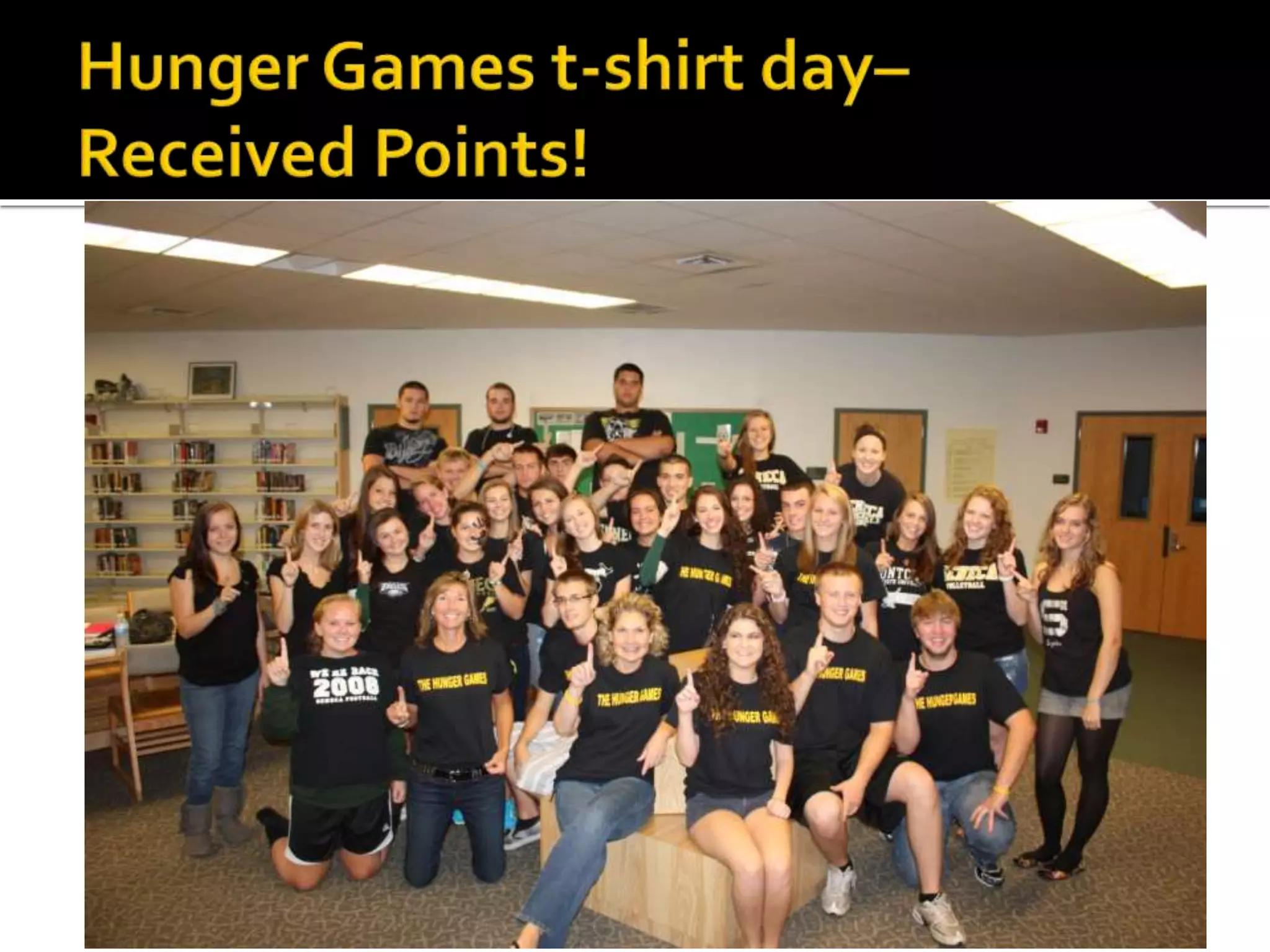 Seneca High School's Hunger Games Project was a district-wide initiative where the entire school community read and engaged with the same young adult novel over the summer. For the 2011-2012 school year, the selected book was The Hunger Games. A committee planned numerous activities to be carried out throughout the year to generate excitement and competition around the themes of the book, including dividing the school into 12 fictional districts, holding a live "reaping" to select student "tributes" from each district, staging an academic pep rally modeled after events in the book, and awarding points to districts. The goal was to develop enthusiasm for reading and build school spirit.