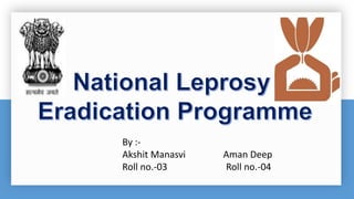 - The National Leprosy Eradication Programme was launched in 1955 and aims to integrate leprosy services into the general healthcare system through early detection, multi-drug therapy treatment, and prevention of disabilities.