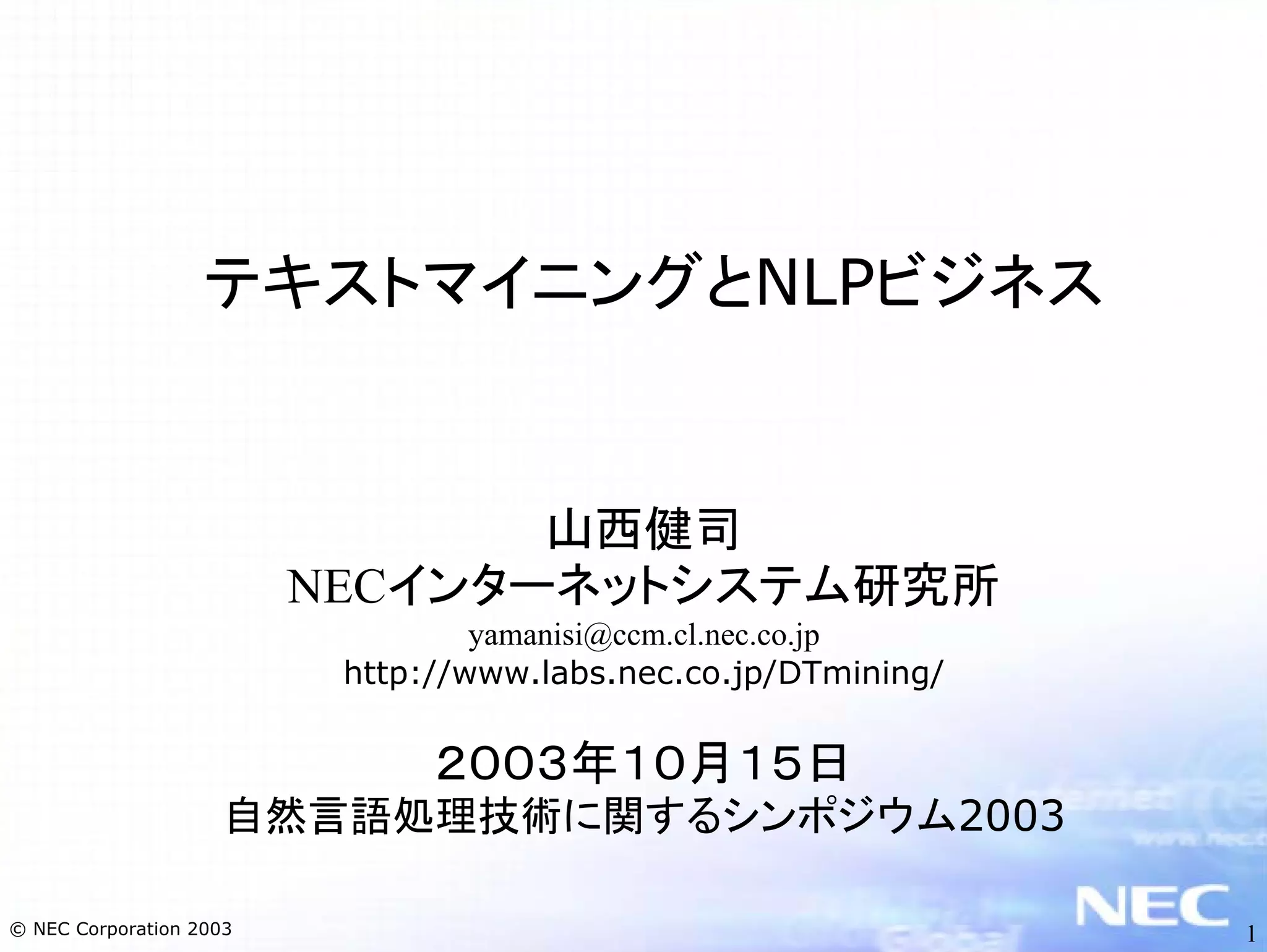 The document discusses text mining and natural language processing technologies and their applications in areas like customer relationship management (CRM), knowledge discovery from large text collections, web mining, text summarization and information retrieval. It provides an overview of text mining techniques and how they relate to fields such as data mining, machine learning, computational linguistics and information retrieval. The document also outlines challenges and opportunities in the area of text mining.