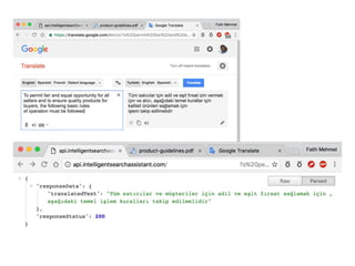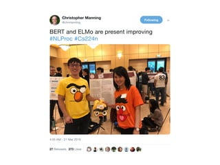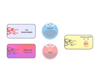 The document outlines the background and projects of Fatih Mehmet Güler in the field of natural language processing (NLP) with deep learning, including applications such as intelligent search assistants and neural machine translation. It discusses various NLP techniques and tools, including word embeddings like Word2Vec, GloVe, ELMo, and BERT, as well as frameworks like PyTorch and TensorFlow. Güler shares insights into current challenges and future directions in NLP research and applications.