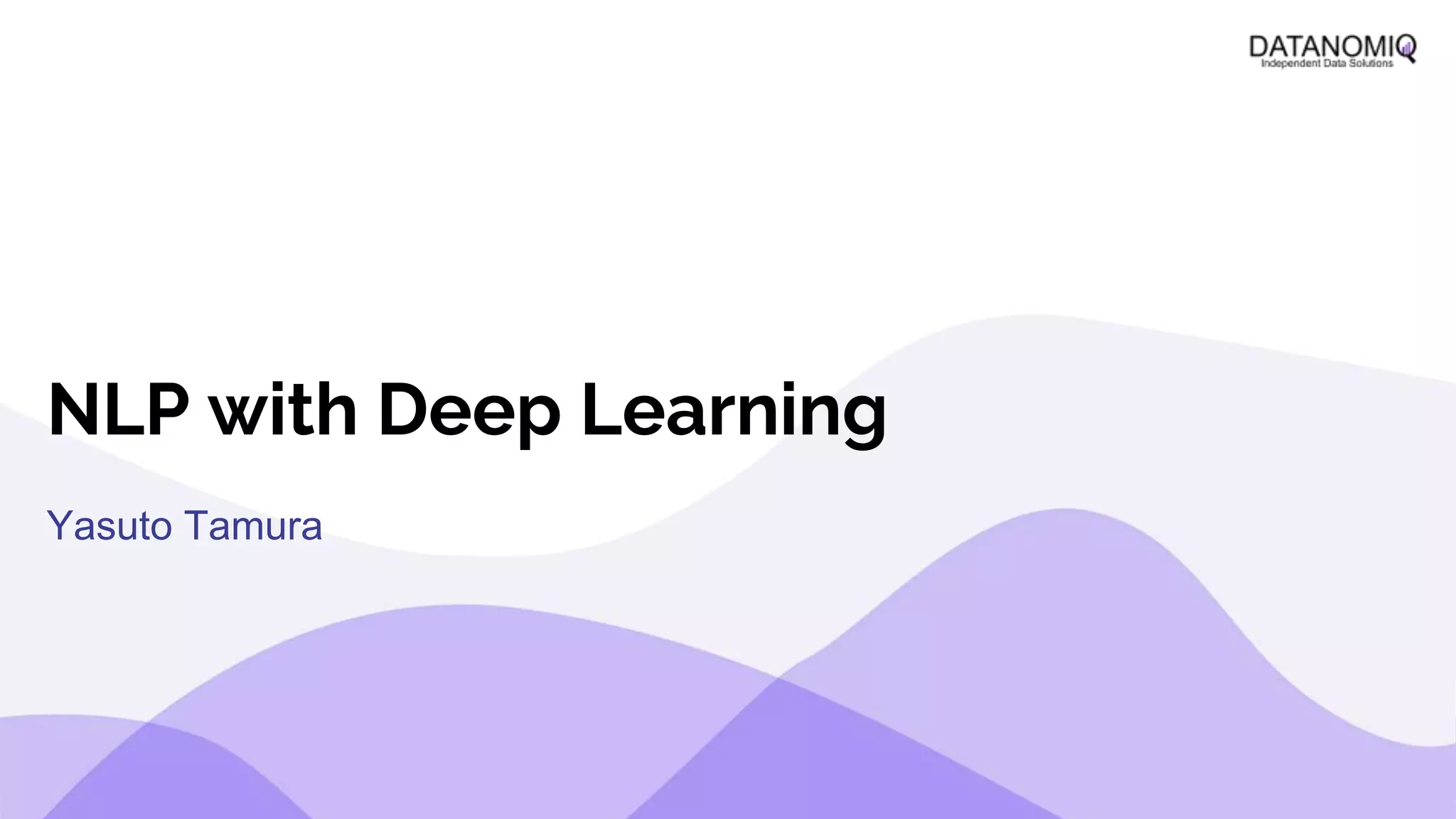 The document discusses various aspects of natural language processing (NLP) using deep learning techniques, emphasizing supervised and unsupervised learning methods, including transfer learning and the use of pre-trained models. It covers concepts such as word embeddings, token embeddings, and methods for visualizing embeddings through dimensionality reduction. Additionally, it explores topic analysis and classification, outlining approaches like BERT and traditional topic modeling techniques.