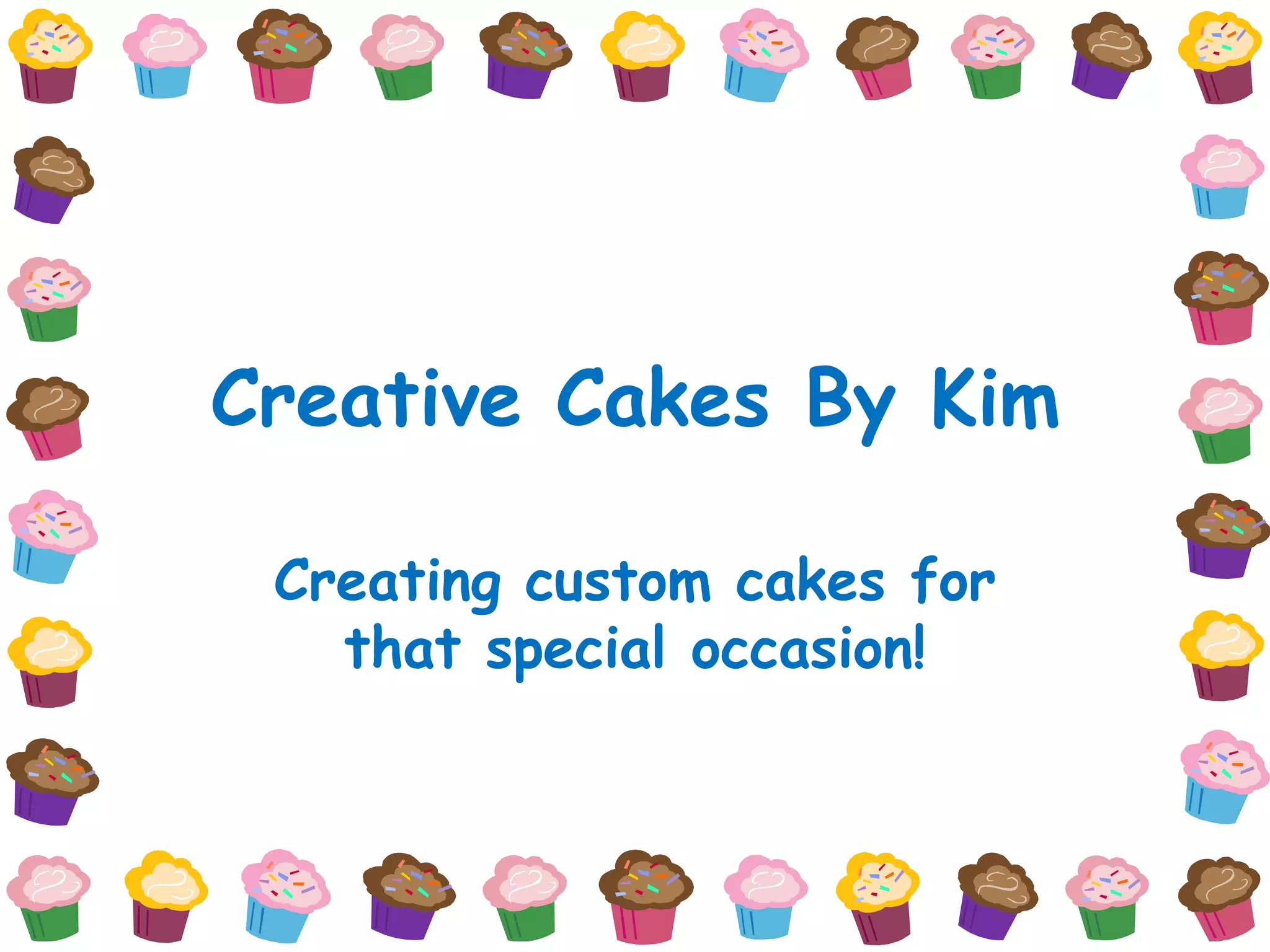 Creative Cakes By Kim is a custom cake business that aims to build awareness and reputation through local advertising and social media engagement. The business will target prospective customers in the local area through Facebook, fliers, business cards and word-of-mouth. The owner, Kim, will interact with customers, offer discounts, understand customer needs and engage the community to grow the business over time. The objective is to establish Kim's Creative Cakes as a professional cake decorator through creative cakes and local promotions.