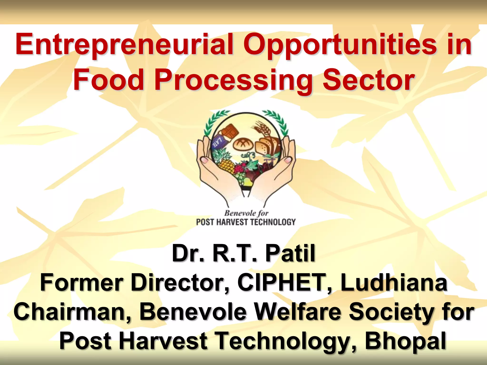 Indian agriculture contributes significantly to GDP and employment, but there are also heavy post-harvest losses of food. There are opportunities for entrepreneurs in food processing to help reduce these losses through technologies like soy milk production, garlic and mango processing equipment, moringa and beetroot powdering, tomato puree production, and pomegranate and aloe vera gel extraction. Adopting techniques like evaporative cooling and cryogenic grinding can further help small processors improve food storage and quality. With appropriate training and resources, food processing can benefit farmers, consumers, and the overall economy.