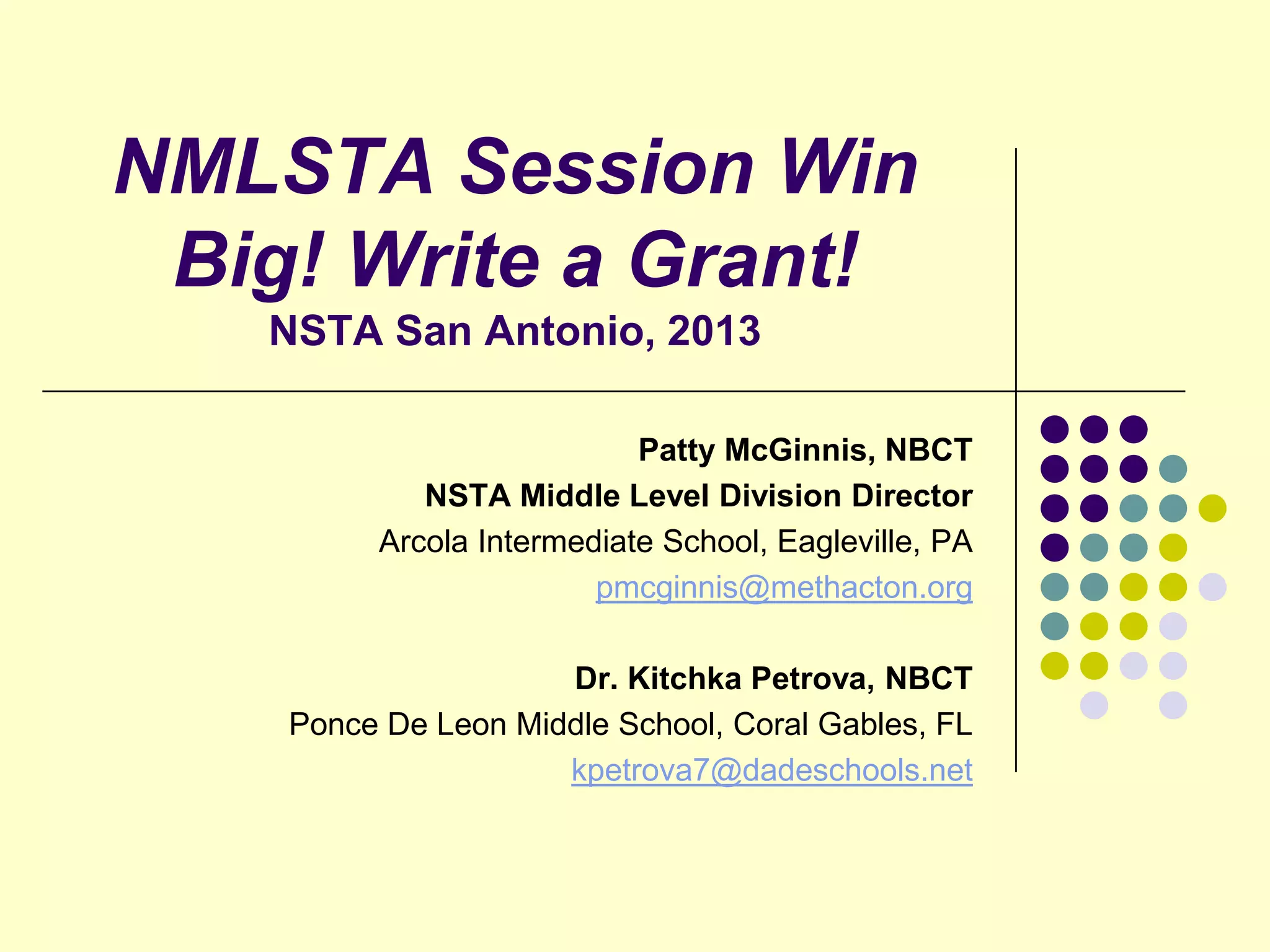 This document provides guidance on writing a successful grant proposal. It outlines the key components of a grant proposal, including the project summary, description of need, objectives, activities, timeline, budget, and evaluation plan. It emphasizes tailoring the proposal to the specific requirements and guidelines of the funding agency. Tips are provided such as clearly articulating the need, having measurable objectives, checking for errors, and getting others to proofread the proposal. The overall message is that with proper preparation anyone can write an effective grant proposal.