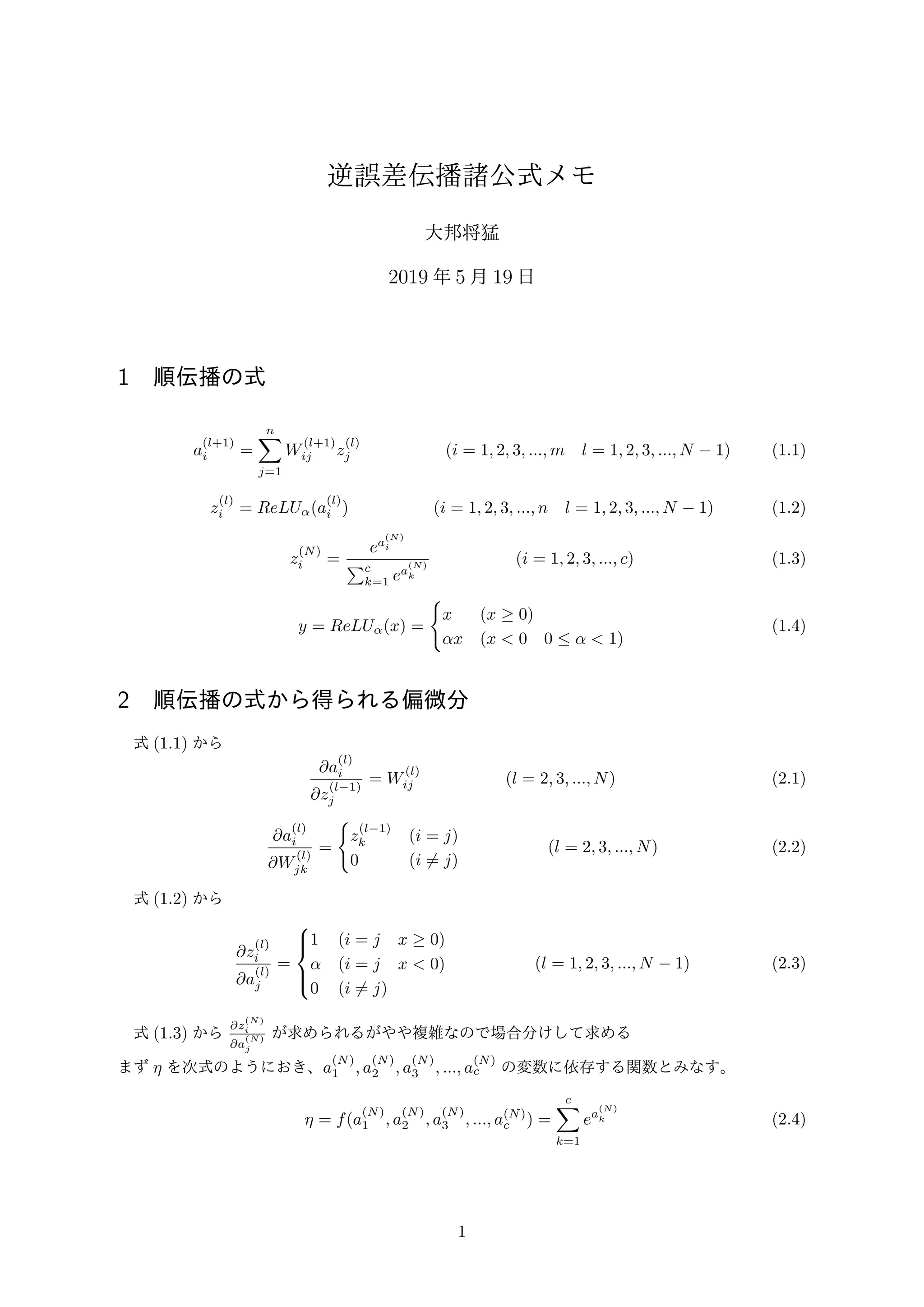 2 順伝播の式から得られる偏微分