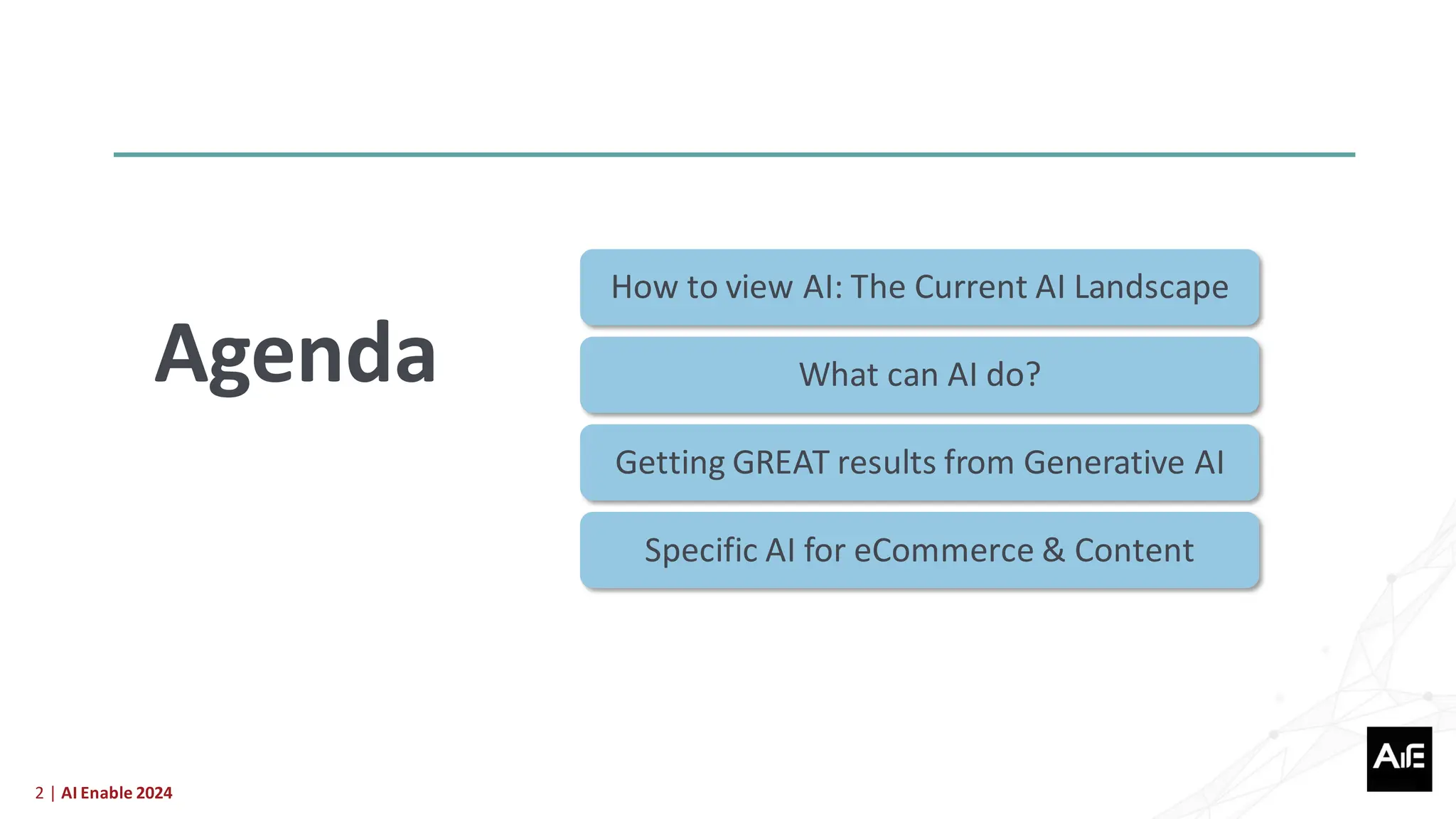 The document outlines the agenda and key themes of the AI Enable 2024 event, emphasizing the transformative role of AI across various sectors, particularly in e-commerce and content creation. It highlights the importance of effective prompting for generative AI to achieve high impact results and offers practical tips for leveraging AI tools to enhance productivity and content quality. Additionally, it discusses AI's capabilities, applications, and the significance of human-AI collaboration to maintain authenticity and improve user experiences.