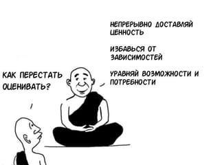 Документ обсуждает концепцию безоценочной разработки, утверждая, что оценка времени и усилий в проектировании приводит к искажению ожиданий и высокой вероятности неудач. Основной акцент сделан на методах оценки задач в контексте Agile и Scrum, а также на важности непрерывной доставки и предсказуемости без традиционного оценивания. Приводятся примеры и статистические данные, подчеркивающие проблемы, возникающие из-за попыток точно оценить время разработки.